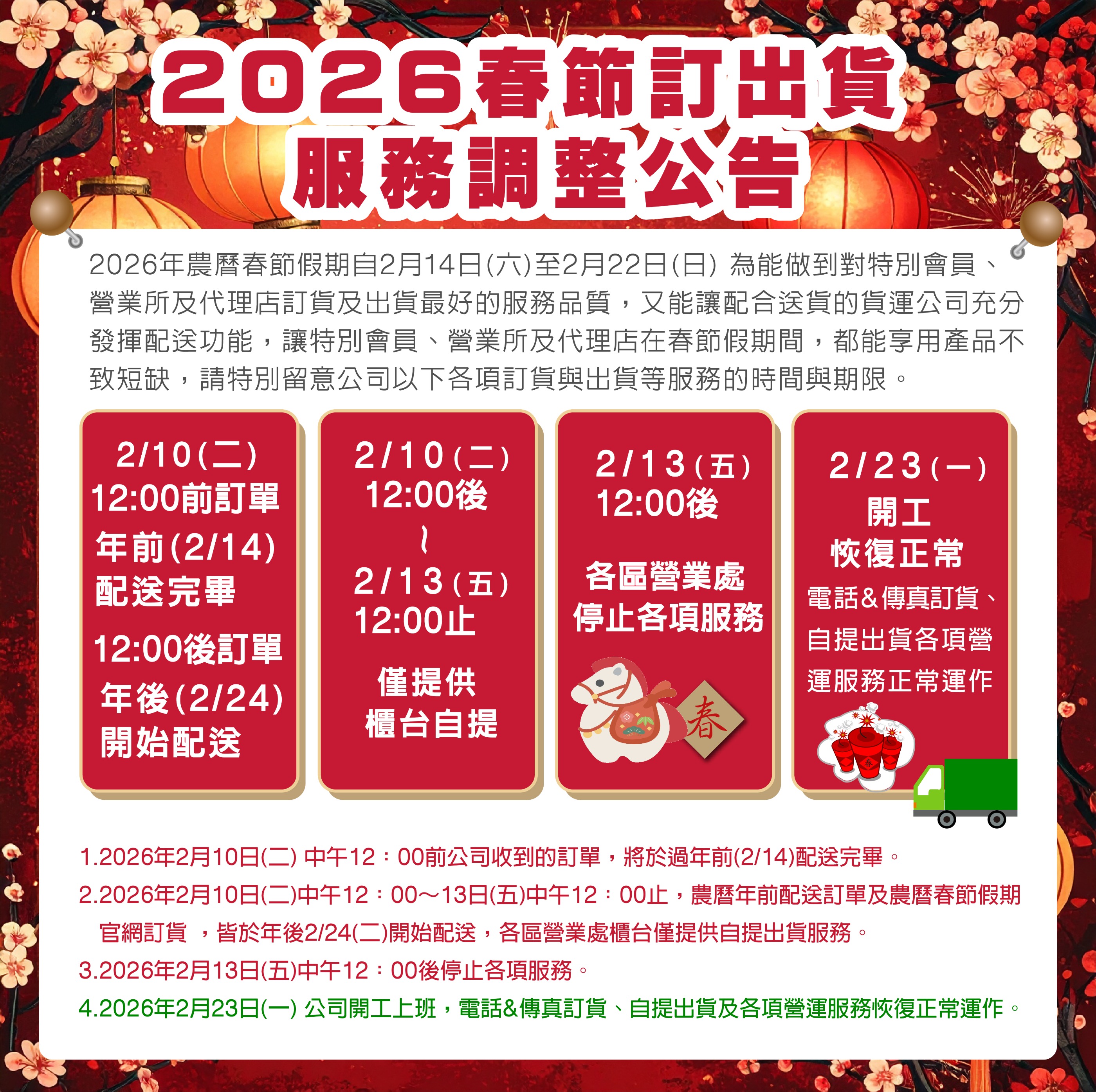 2026春節訂出貨服務時間
